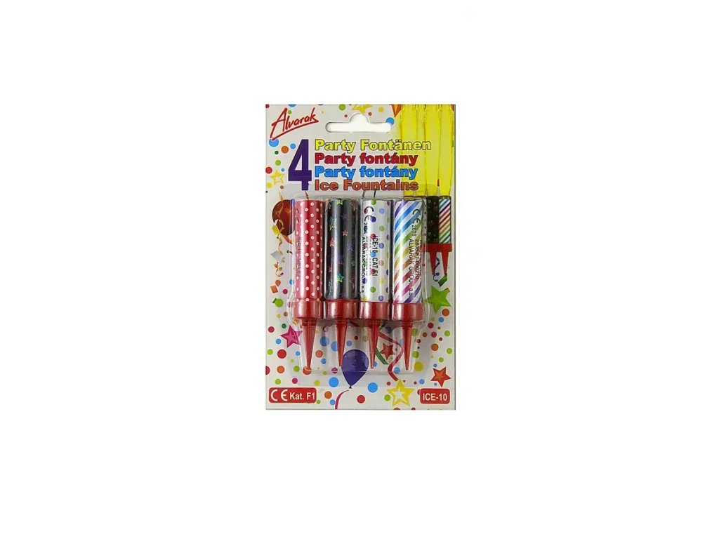 Návod na použitie: červeným plastovým hrotom zapichnúť do torty a opačnú stranu (papierové tesnenie fontány na jej vrchnej časti) zapáľte. Doba horenia je cca 30 sekúnd.