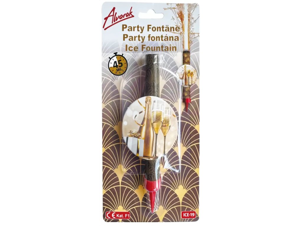 Návod na použitie: červeným plastovým hrotom zapichnúť do torty a opačnú stranu (papierové tesnenie fontány na jej vrchnej časti) zapáľte. Doba horenia je cca 45 sekúnd.