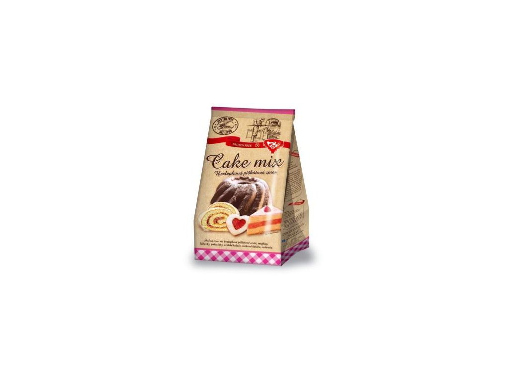 Cake mix bezlepková piškótová zmes. Zmes obsahuje prirodzene bezlepkové suroviny. Pripravíte z nej bezlepkové korpusy na zákusky, torty, rolády, muffiny, bábovky, palacinky, krehké koláče, sušienky, venčeky.