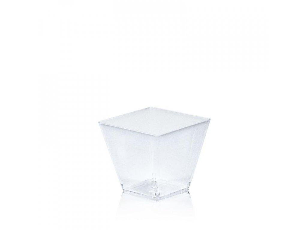 Plastový pohárik na dezerty hranatý , číry 59x59x54 mm. Objem 100ml.