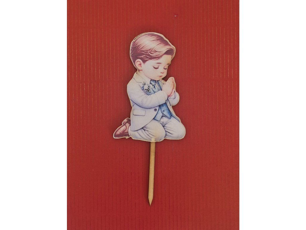 Drevený zápich kľačiaci chlapec - prvé sväté prijímanie . Výrobok je určený výhradne ako dekorácia na tortu alebo zákusky. Nie je jedlý a neslúži na konzumáciu. Odporúčame obaliť zapichovanú časť potravinovou fóliou.
