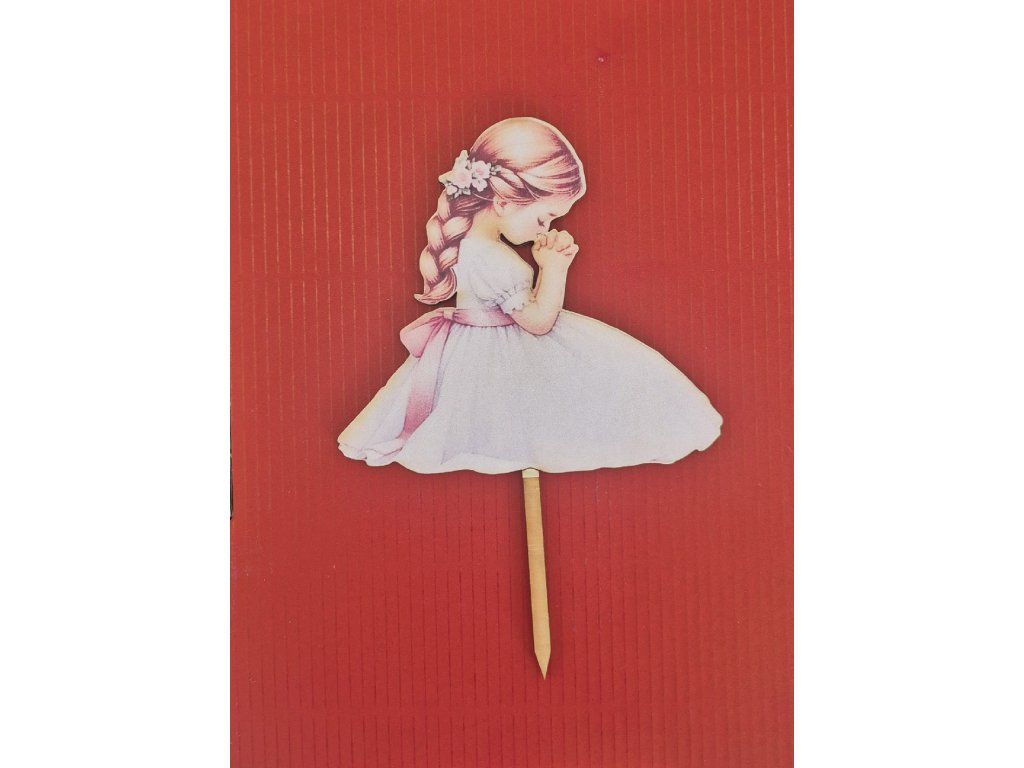 Drevený zápich kľačiace dievča - prvé sväté prijímanie . Výrobok je určený výhradne ako dekorácia na tortu alebo zákusky. Nie je jedlý a neslúži na konzumáciu. Odporúčame obaliť zapichovanú časť potravinovou fóliou.