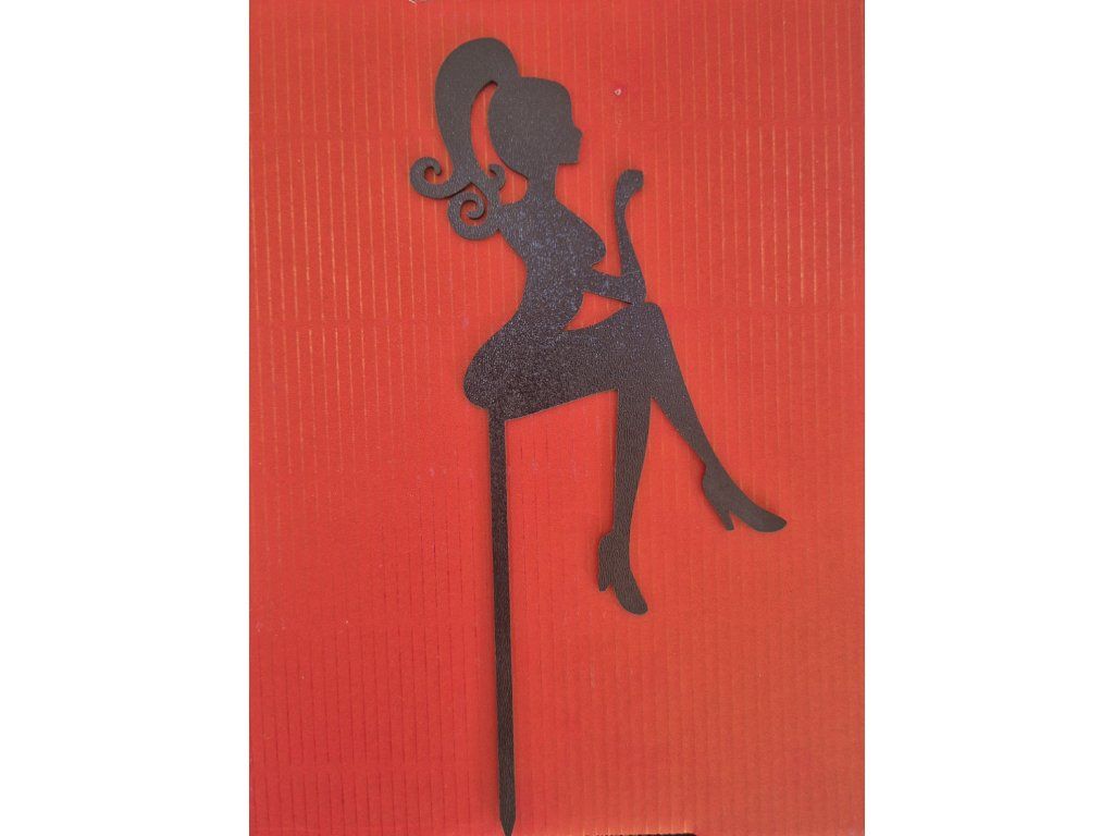 Drevený čierny zápich sediace dievča . Výrobok je určený výhradne ako dekorácia na tortu alebo zákusky. Nie je jedlý a neslúži na konzumáciu. Odporúčame obaliť zapichovanú časť potravinovou fóliou.