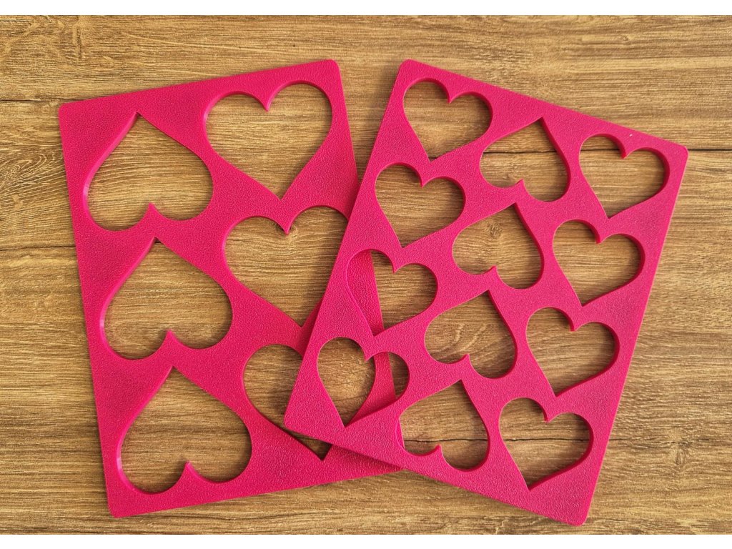 Väčšia srdiečková forma na laskonky vám zabezpečí 6 ks laskoniek, vďaka jednému priloženiu šablóny. Každá laskonka (srdiečko) je v rozmere 61x55 mm.