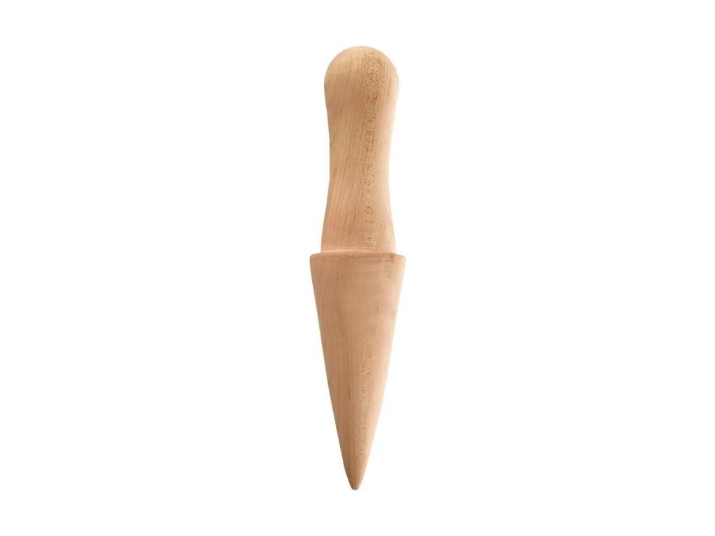 Tradičné pomôcky z prírodného dreva by nemali chýbať v žiadnej kuchyni. Forma v tvare kužeľa pomôže vytvoriť klasické vaflové zmrzlinové kornúty upečené vo vaflovači, ktoré môžete plniť domácou zmrzlinou, ovocím, krémom, dreňou, slanou nátierkou... Rovnako dobre je možné formu využiť na výrobu sladkých medových alebo orechových kornútkov plnených snehom.... Z cesta vykrojíte koliesko s pr. cca 12 cm, upečiete, ešte teplé vytvarujete pomocou tejto formy do kornútika a necháte vychladnúť. Materiál: bukové drevo. Rozmery: d. 18 cm, pr. 3,5 cm. Nie je vhodná do umývačky ani do rúry.
