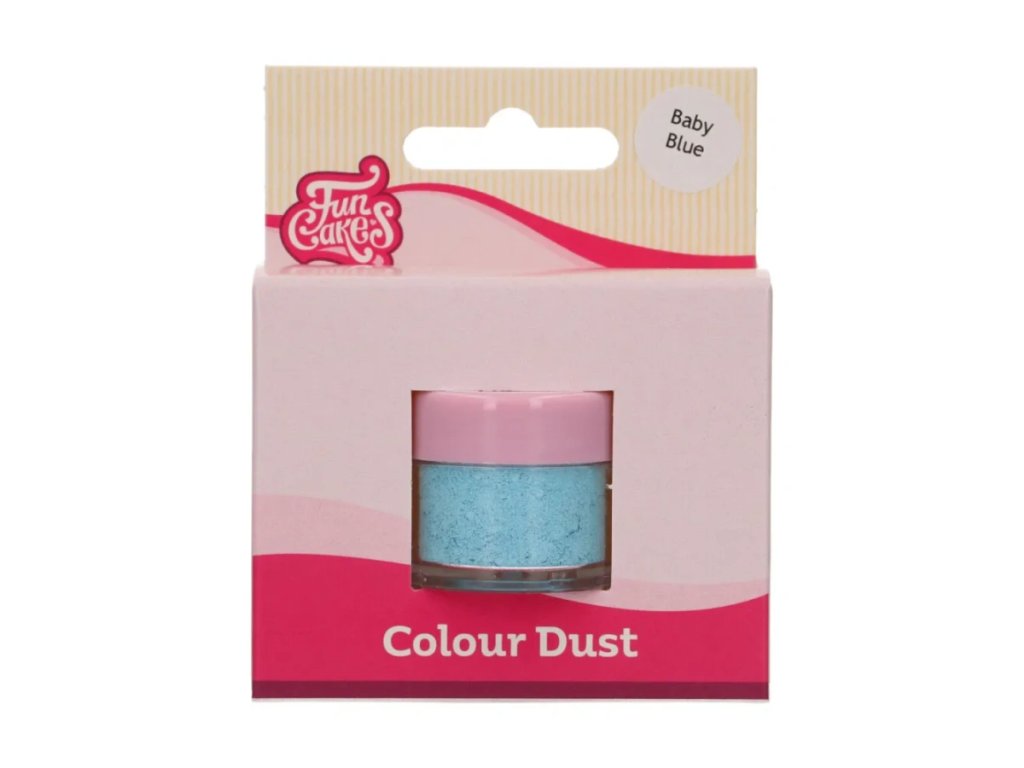 FC PRACHOVÁ FARBA Baby Blue (modrá) Farba do potravín. Zloženie: farbivá: E170, E133, E132. Distribútor: NewCakes BV, Bruynvisweg 3, 1531 AX, Wormer, Holandsko. Návod na použitie / dávkovanie: Prachovú farbu aplikujte pomocou štetca v požadovanom množstve na torty, fondánové dekorácie a cupcakes. Farbu môžete zmiešať s trochou číreho alkoholu, vznikne tak tekutá farba na maľovanie (max. 1,4 g/kg).. . Skladovanie: Teplota: min. 15.0°C, max. 20.0°C. Skladujte na tmavom mieste. Identifikácia výrobnej dávky: viď obal. Minimálna trvanlivosť do: viď obal. Hmotnosť: 5 g.