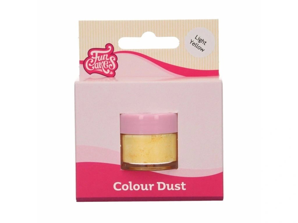 FC PRACHOVÁ FARBA light yellow (žltá) Farba do potravín. Zloženie: farbivá: E170, E102 . E102 môže mať nepriaznivé účinky na činnosť a pozornosť detí. Distribútor: NewCakes BV, Bruynvisweg 3, 1531 AX, Wormer, Holandsko. Návod na použitie / dávkovanie: Prachovú farbu aplikujte pomocou štetca v požadovanom množstve na torty, fondánové dekorácie a cupcakes. Farbu môžete zmiešať s trochou číreho alkoholu, vznikne tak tekutá farba na maľovanie (max. 1,4 g/kg).. . Skladovanie: Teplota: min. 15.0°C, max. 20.0°C. Skladujte na tmavom mieste. Identifikácia výrobnej dávky: viď obal. Minimálna trvanlivosť do: viď obal. Hmotnosť: 5 g.
