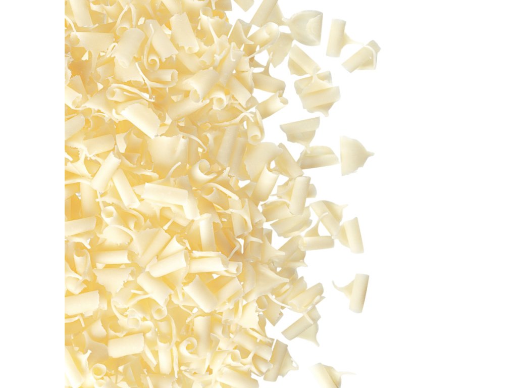 Ozdoba z kvalitnej bielej čokolády v podobe precízne vyrobených hoblín veľkosti 9 x 5 mm. Ľahké a nadčasové hoblín sú nevyhnutnosťou každého cukrára, poskytujú praktickú a cenovo výhodnú povrchovú úpravu dezertov alebo sú skvelou prísadou do krémov a náplní.