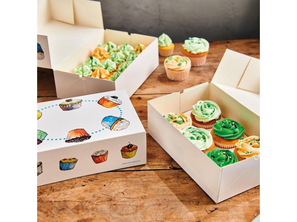 - súčasťou balenia je i podložka s presnými výrezmi na cupcakes, aby pevne držali v krabici