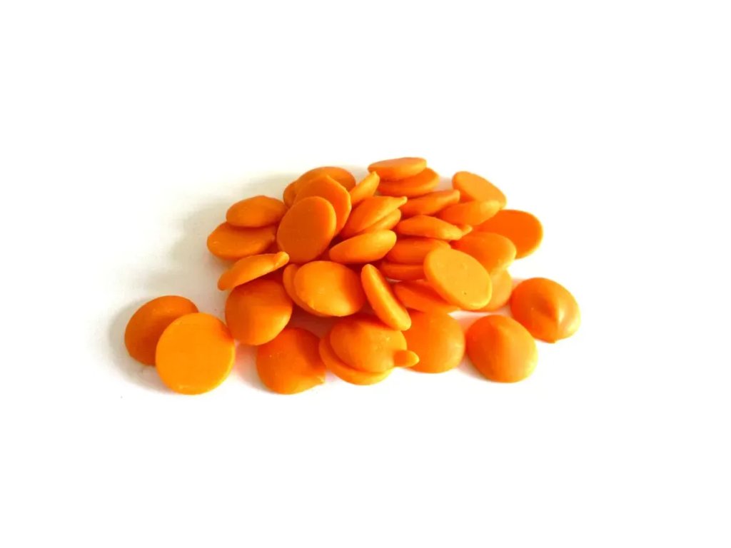 Čokoládová poleva s pomarančovou chuťou a vôňou pravých pomarančov. Veľkou výhodou tejto polevy je jej typ výroby - malé peniažky sa lepšie rozpúšťajú aj dávkujú a čisto prírodné zloženie.