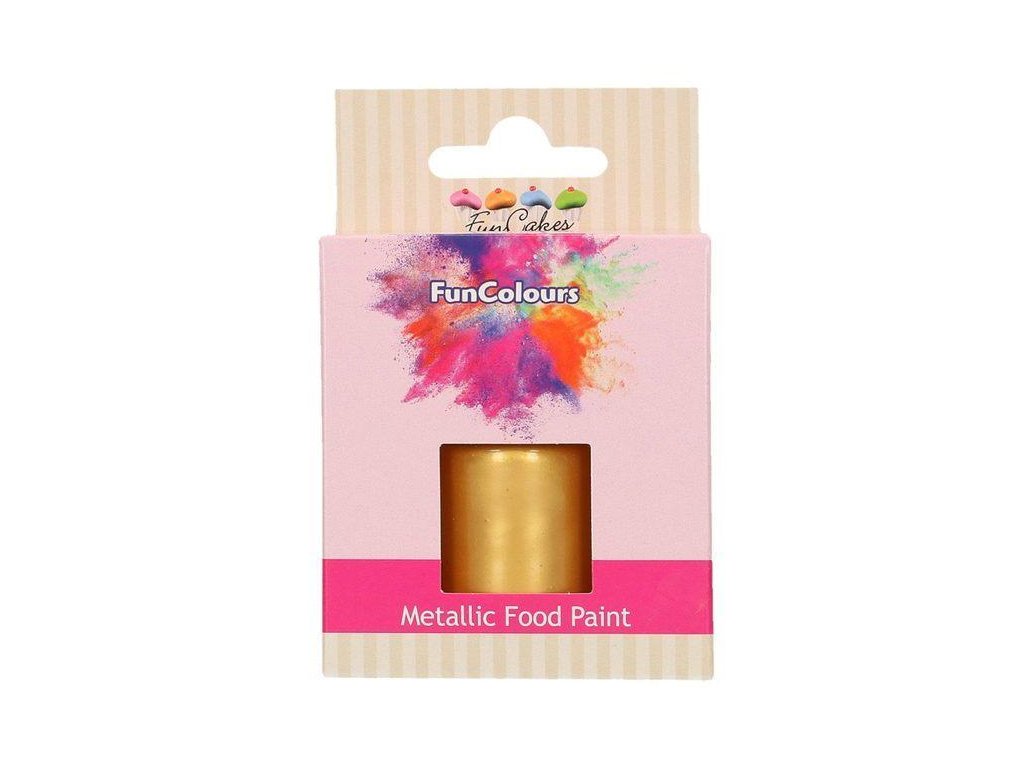 Pomocou FunCakes Metallic Food Paint Gold môžete vytvárať nádherné efekty na fondáne, marcipáne, gumovej paste,