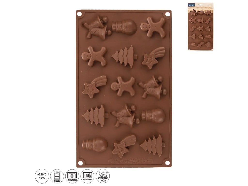 Silikónová forma Vám vytvorí dobroty z čokolády vo vianočných tvaroch – stromček, kométa, zvončeky, panáčik, snehuliak.