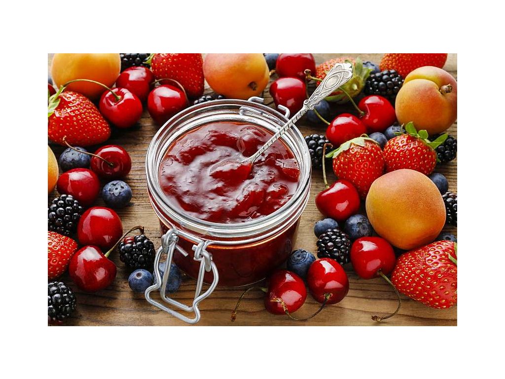 Jablková dreň (41%), cukor (35%), ovocné drene: marhuľová 9%, višňová 9%, jahodová 4%, regulátor kyslosti: kyselina citrónová, želirujúca látka: pektin, koncentrát z bazy čiernej. Chemicky konzervovaná. Konzervačná látka : E 202 Pripravené zo 132,6 g ovocia na 100g. Celkové množstvo cukru: minimálne 60g na 100g.Za vyyšie uvedené informácie nenesieme zodpovednosť, vzhľadom k tomu, že sa potravinárske produkty neustále menia.