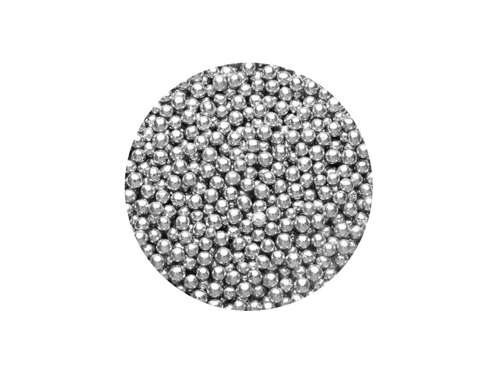 Cukrové guličky poťahované striebornou farbou na zdobenie cukrárskych výrobkov, aróma,kyselina citrónová,soľ,želatina.