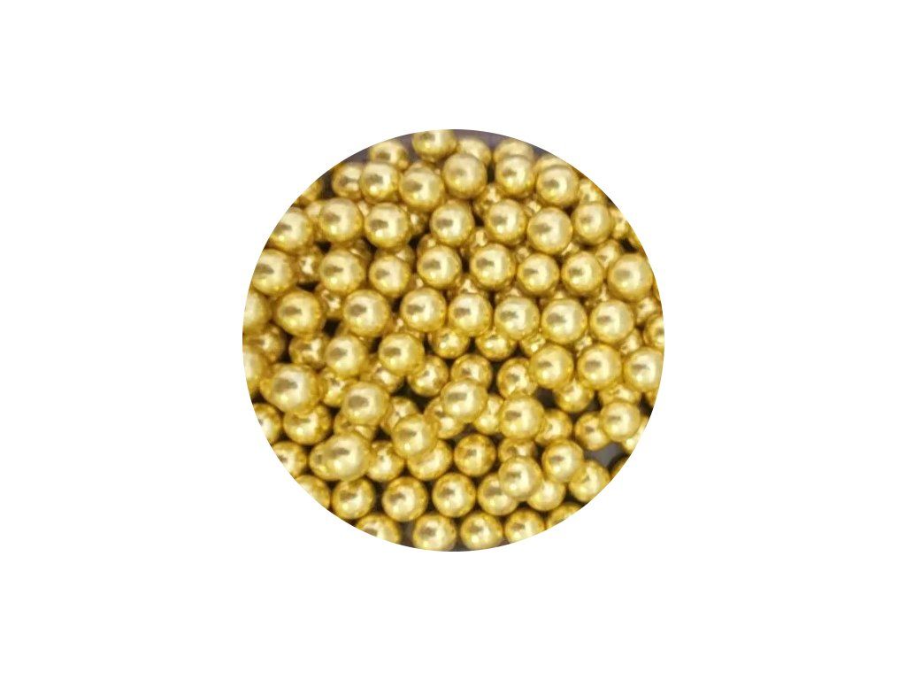 Cukrové guličky poťahované zlatou farbou (odtieň mierne do žlta) na zdobenie cukrárskych výrobkov