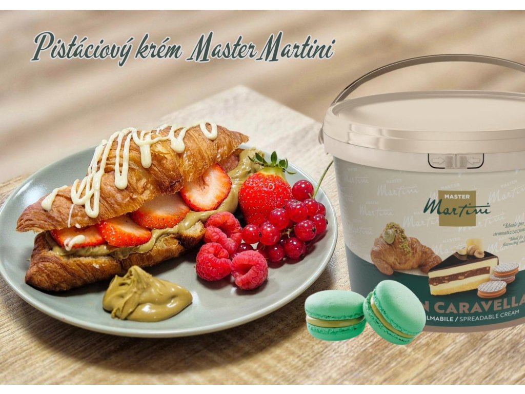 Pistáciový krém Caravella Gran Pistacchio 1 kg sa vyznačuje intenzívnou pistáciovou chuťou a vysokou kvalitou ingrediencií vrátane 15 % pistácií. Je vytvorený pre profesionálnych cukrárov a pekárov a je ideálny na rôzne použitie, napríklad na plnenie croissantov, vrstvenie tort a ochucovanie krémov.