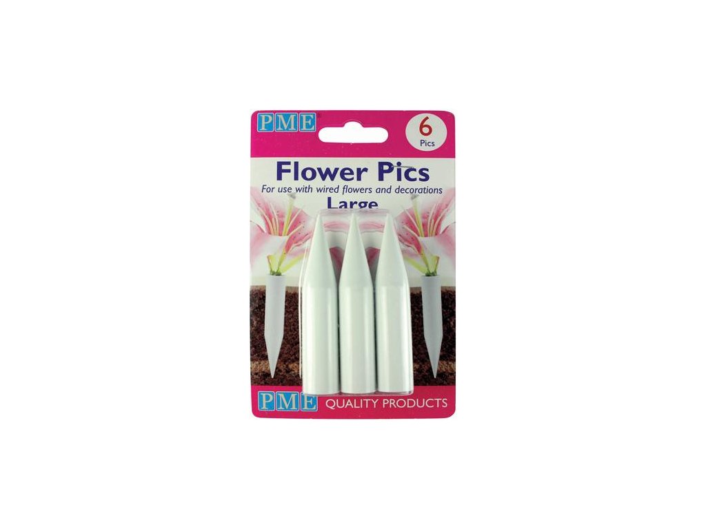 Držiaky naplnte vodou, vtlačte ich do torty a vložte do nich čerstvé kvety. Držiaky môžete tiež použiť na umelé, alebo jedlé kvety.