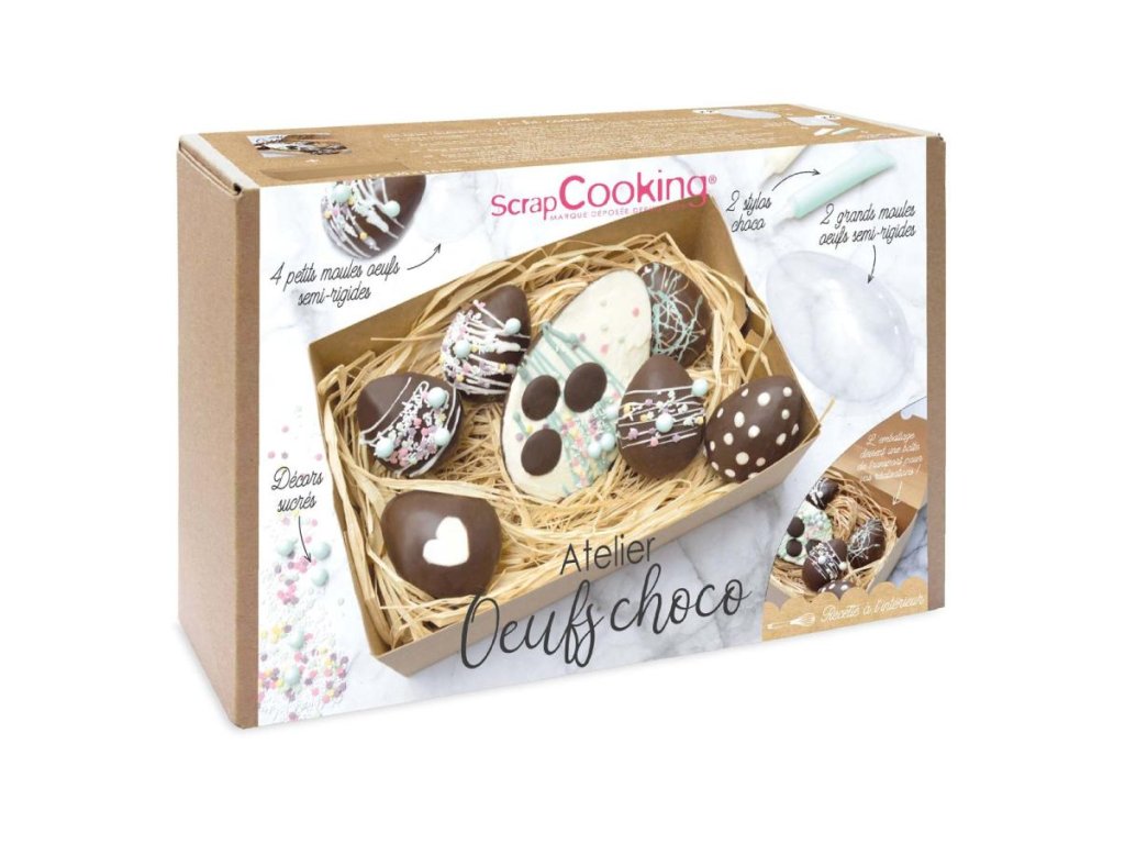 Súprava Scrapcooking, ktorá vás prevedie tvorbou krásnych domácich čokoládových vajíčok. Ideálne na vytvorenie čokoládových veľkonočných vajíčok s lesklým výsledkom ako u výrobcu čokolády! Originálny nápad ako si dozdobiť torty, dezerty na Veľkú noc, alebo pripraviť domáce výslužky pre šibačov.