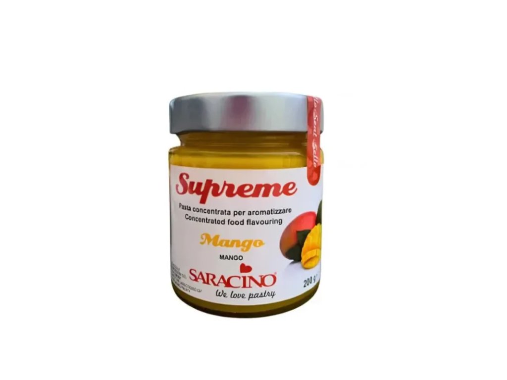 Ochucovacia pasta Saracino s príchuťou mango je ideálna na dodanie obľúbenej chute do vašich krémov, zmrzlín, ciest, plniek, šľahačky a ďalších sladkých výrobkov. Môže sa pridávať aj do cesta na pečenie, alebo čokoládovej polevy.