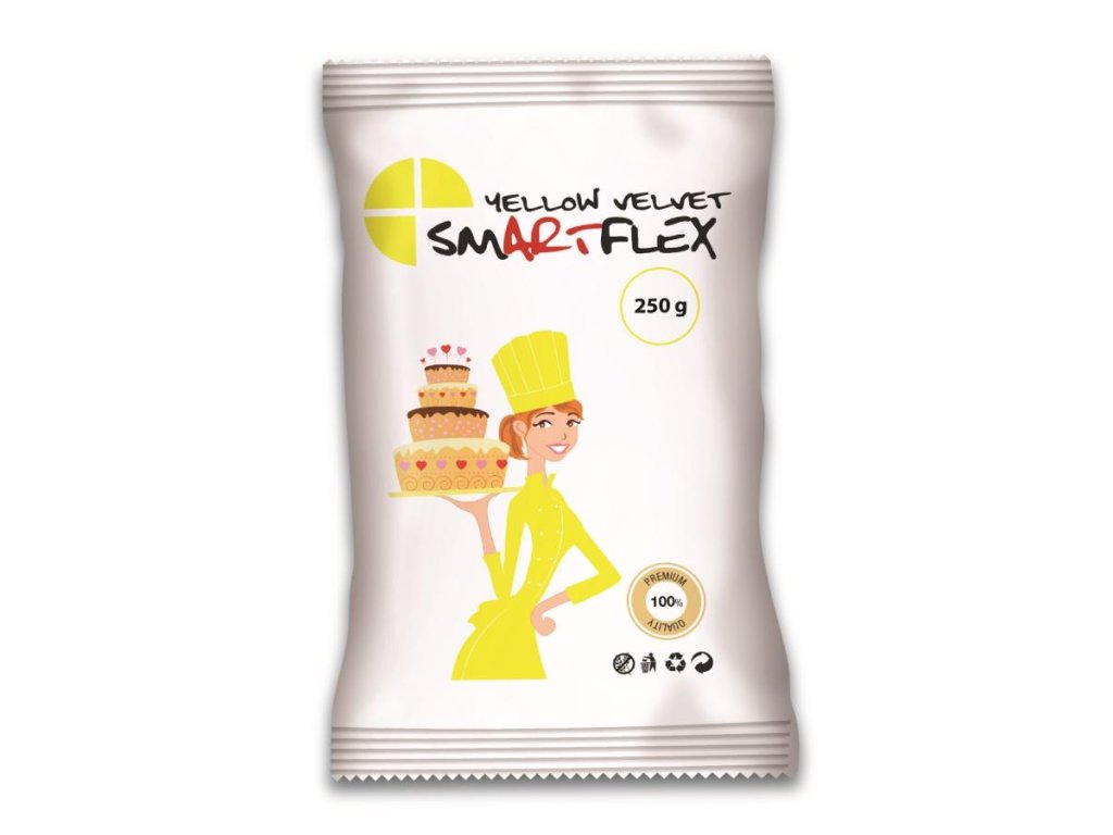 Žltá extra pružná hmota s vynikajúcimi vlastnosťami, vhodná k poťahovaniu torty. Pri poťahovaní je veľmi pružná, nelepí sa, rýchle si drží tvar.