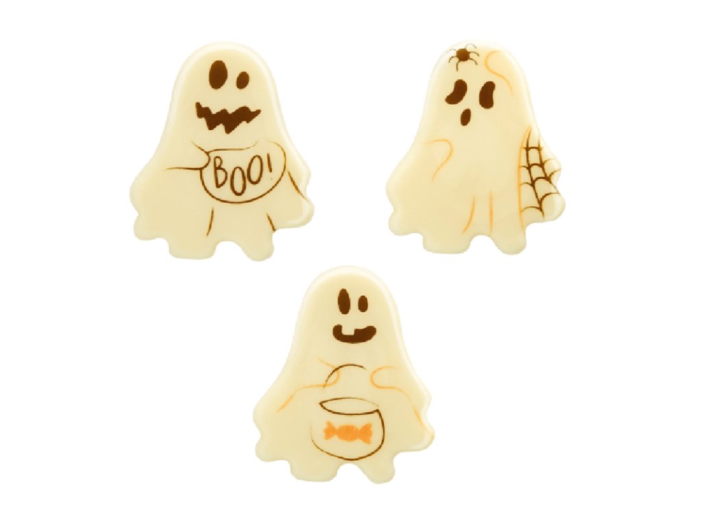 Strašidlo je sada ozdôb s rozmermi 31 x 36 mm, vyrobená z kvalitnej bielej čokolády s tmavohnedou a oranžovou potlačou. Ozdoby pripomínajúce duchov sú perfektným doplnkom k halloweenskym výtvorom.