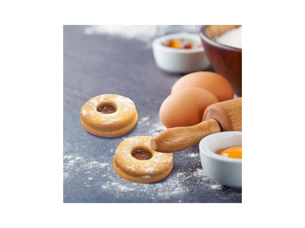 Nerezová vykrajovačka KOLIESKO s priemerom 4cm má ostrú dolnú hranu, vďaka ktorej je možné ľahko vykrojiť sušienky, cukrovinky, šišky i základ pre menšie plnené koláčiky.
