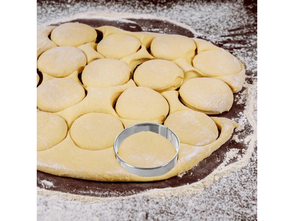 Nerezová vykrajovačka KOLIESKO s priemerom 6 cm má ostrú dolnú hranu, vďaka ktorej je možné ľahko vykrojiť sušienky, cukrovinky, šišky i základ pre menšie plnené koláčiky.