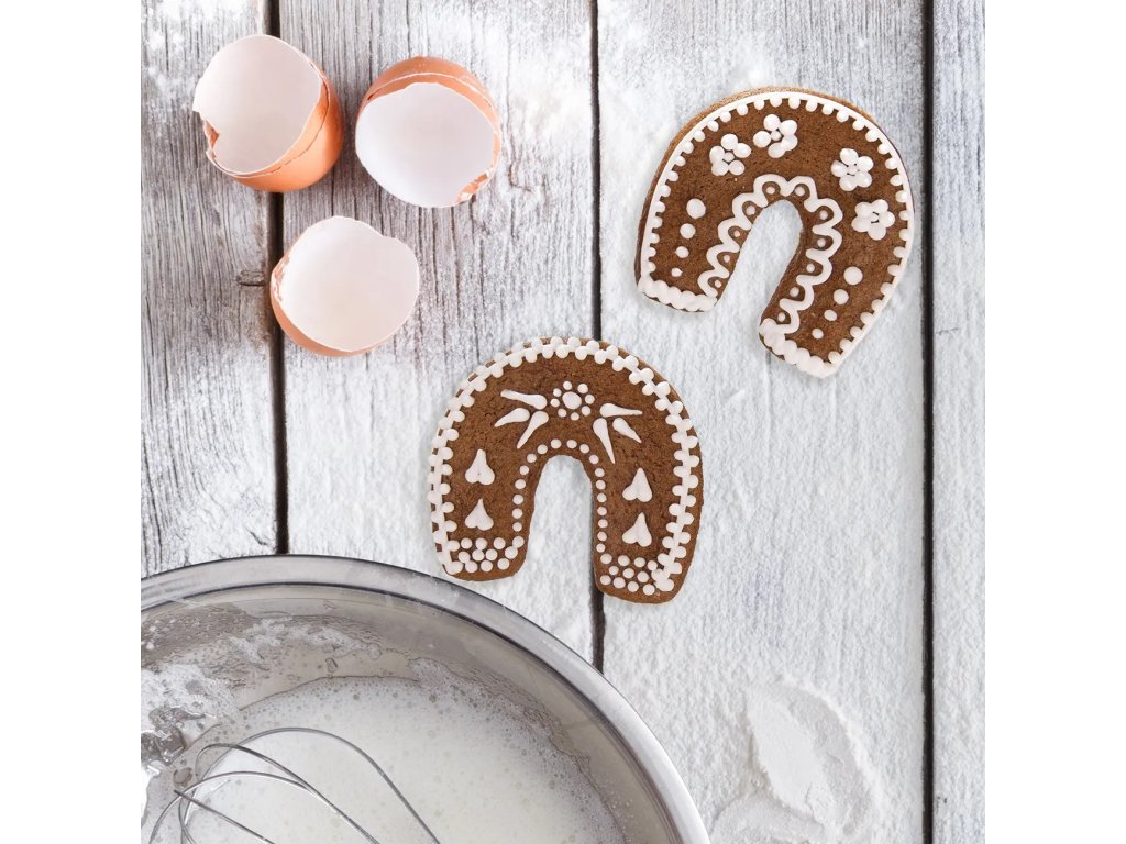 Nerezová vykrajovačka PODKOVA s ostrou dolnou hranou je nenahraditeľným pomocníkom pri pečení cukroviniek alebo originálnych sušienok.