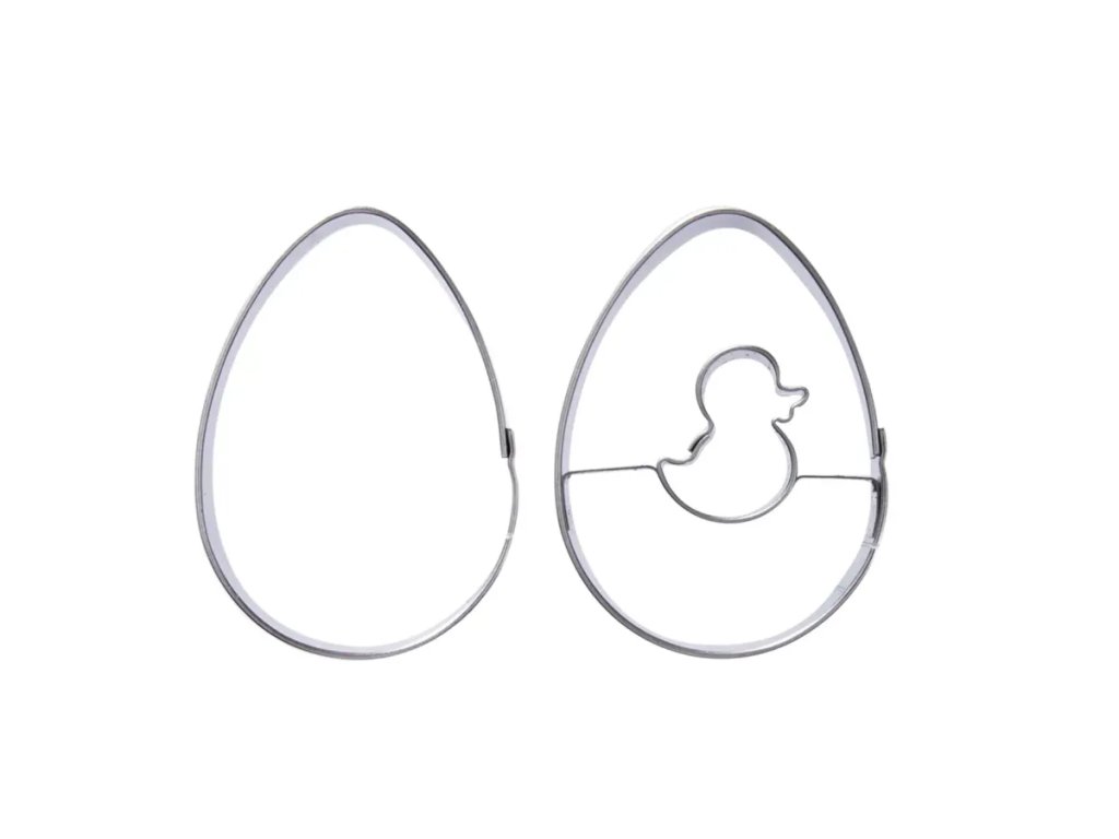 Formičky na vykrajovanie so stredom + formička bez stredu (protikus). Materiál: nerez.Vajce, d. 5,5 cm.