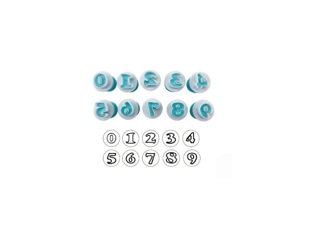 Sada plastových vykrajovačiek na výrobu číslic. Obsahuje všetky písmena od 0 po 9